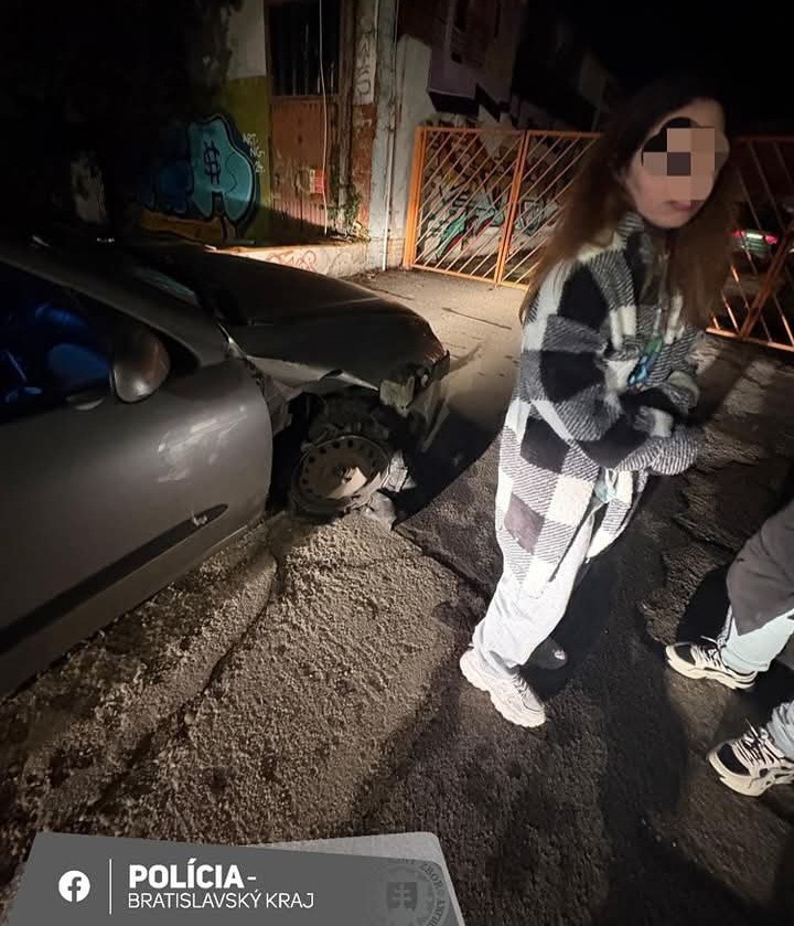 "V piatok krátko po 01.45 h spozorovala hliadka policajtov druhého bratislavského okresu vozidlo, ktoré odbočovalo z Vrakunskej cesty na ulicu Ružinovská. Pozornosť hliadky vzbudil technicky stav vozidla, keďže vydávalo značne škrípajúci hlasný zvuk, malo nefunkčný pravý svetlomet, predná pravá časť bola značne poškodená a vozidlo sa pohybovalo na pravom prednom disku, pneumatika bola potrhaná," priblížil.
