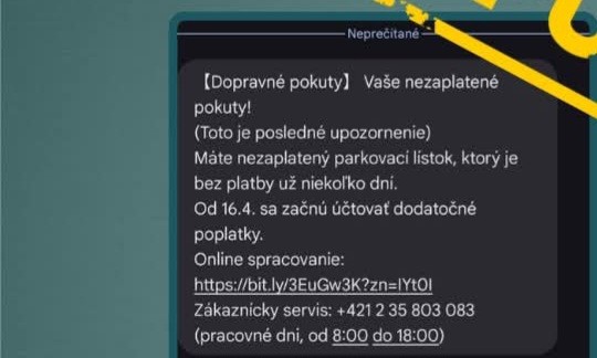 Polícia upozorňuje na podvodné SMS správy o nezaplatení pokuty, pričom súčasťou správy je aj link, na ktorom človek "všetko vyrieši." Polícia eviduje desiatky takýchto podnetov od občanov. Informuje o tom na sociálnej sieti.