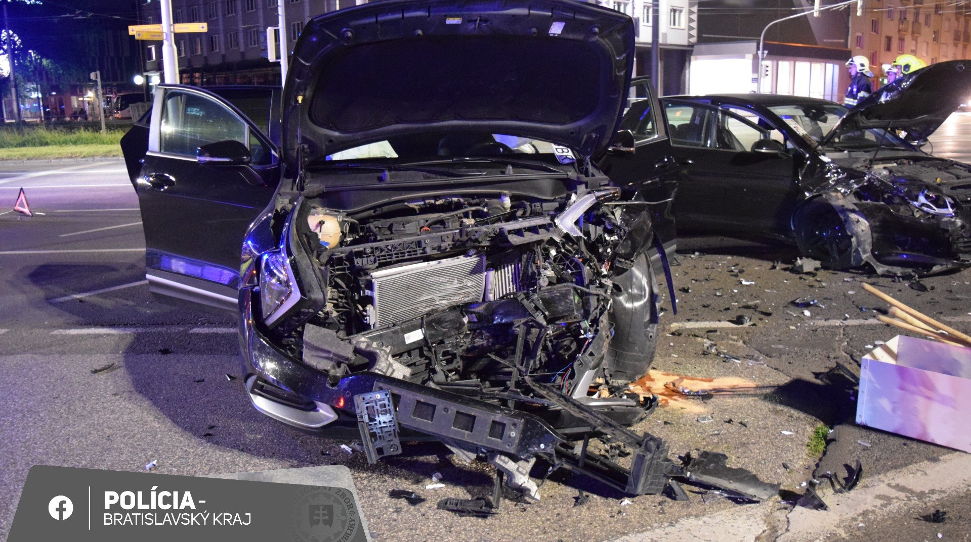 Nehoda sa stala v nedeľu o 00.52 h. „Z doposiaľ nezistených príčin došlo k zrážke motorového vozidla značky VW Golf, ktoré viedol vodič od Krížnej ulice smer ulica Vajnorská, a motorového vozidla značky Kia Sportage, ktoré viedol vodič po ulici Trnavská cesta v smere na ulicu Šancová,“ priblížili policajti.