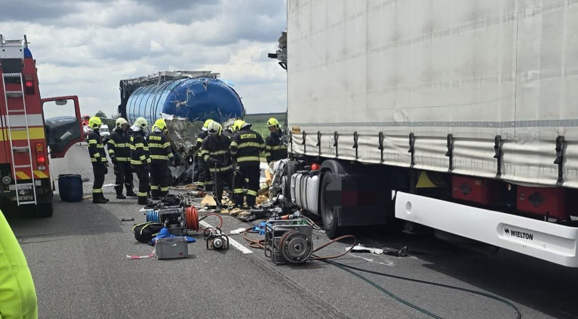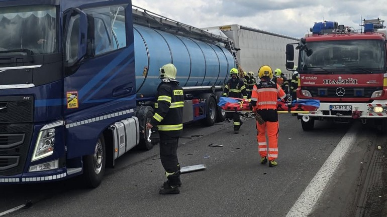 "Podľa doposiaľ zistených informácií tu prišlo k zrážke troch nákladných vozidiel," informovala polícia na sociálnej sieti.