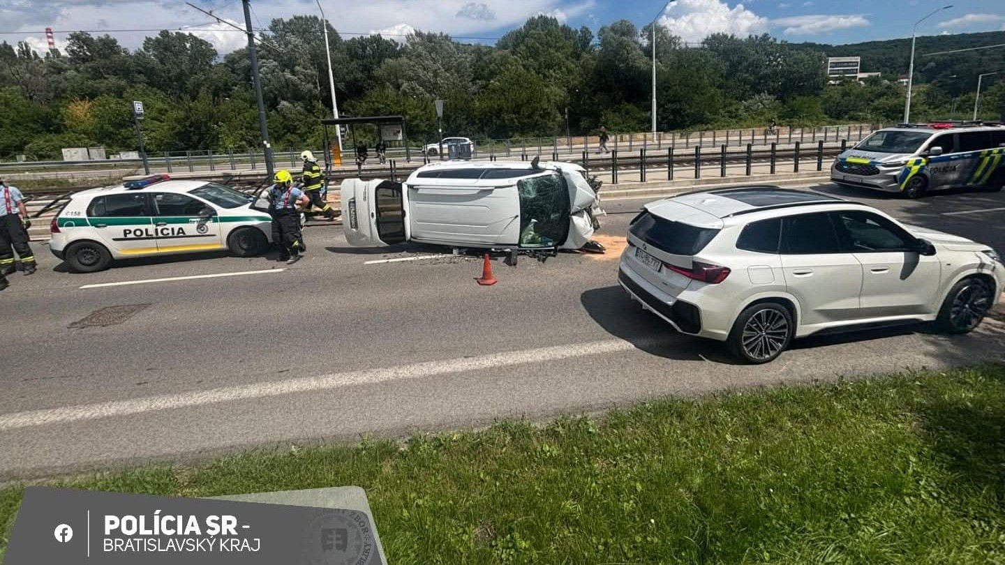 Nehoda na KarloveskejV Bratislave na hranici Dúbravky a Karlovej Vsi došlo v sobotu (12.7.) k dopravnej nehode, pri ktorej sa prevratilo osobné auto.