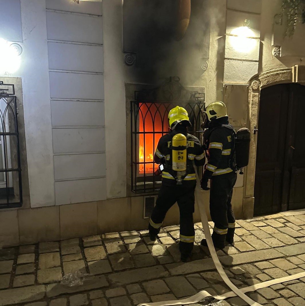 Nočný požiar v úzkej uličke: V historickom centre mesta horel byt
