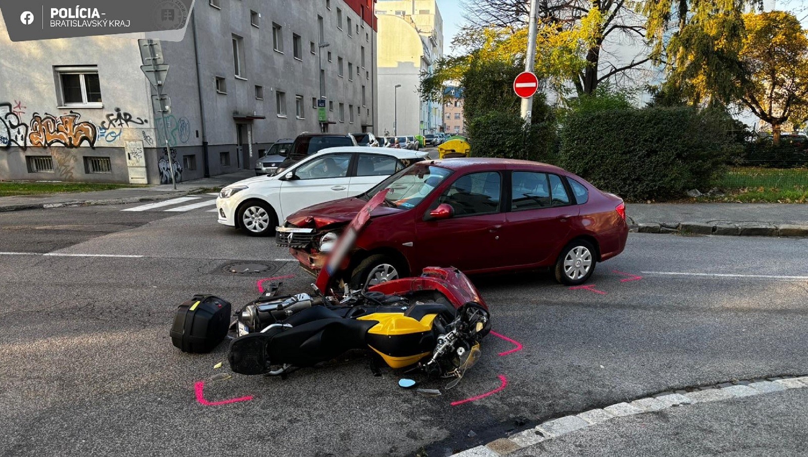Na Svätoplukovej sa zrazilo auto s motocyklom, motorkár aj so spolujazdkyňou skončili v nemocnici
