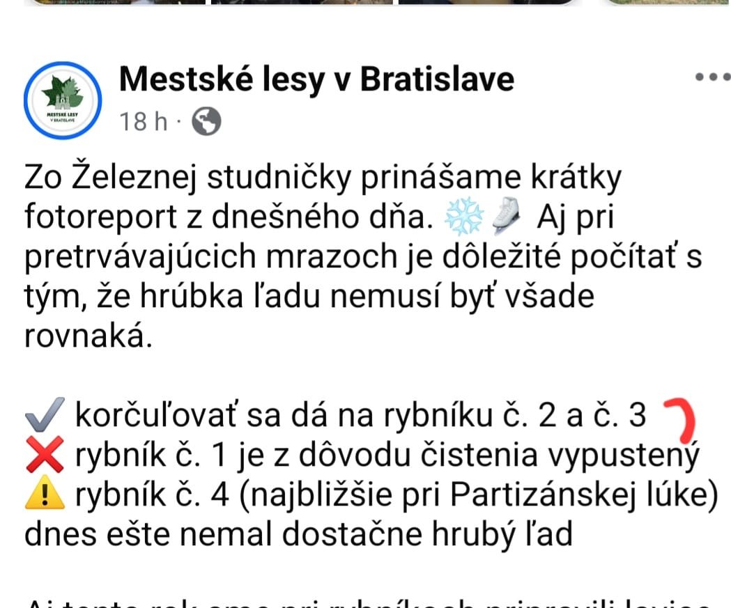 Ešte včera však Mestské lesy na sociálnej sieti uvádzali, že korčuľovať sa dá na rybníkoch číslo 2 a 3, teda i tam, kde skoro došlo k tragédii. Dnes už táto veta v statuse nie je.