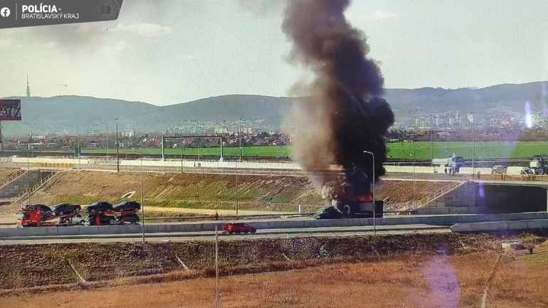 Požiar nákladného auta na diaľnici D4Bratislavskí dopravní policajti spolu s hasičmi vyrazili dnes (19.3.) k horiacemu nákladnému autu na 25. kilometer diaľnice D4 v smere do Rakúska, v blízkosti križovatky Ivanka pri Dunaji.