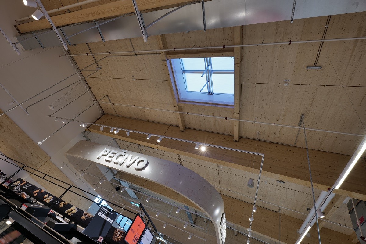 „Nová predajňa v Záhorskej Bystrici je spomedzi prevádzok obchodného reťazca prvou a jedinou svojho druhu v strednej aj východnej Európe. Ide o pilotný projekt spoločnosti Kaufland a výnimočný je najmä v tom, že pri stavbe sa použilo drevo namiesto betónu,“ vysvetľuje Lucia Vargová, hovorkyňa Kaufland Slovenská republika. Konštrukciu predajne tvorí až 75 percent dreva*, pretože drevená stavba v porovnaní s bežnou železobetónovou budovou vyprodukuje počas svojej životnosti o 514 ton CO2** menej. Len pre predstavu, také množstvo CO2, do ovzdušia vypustí osobné auto pri najazdení 4,4 milióna kilometrov.
