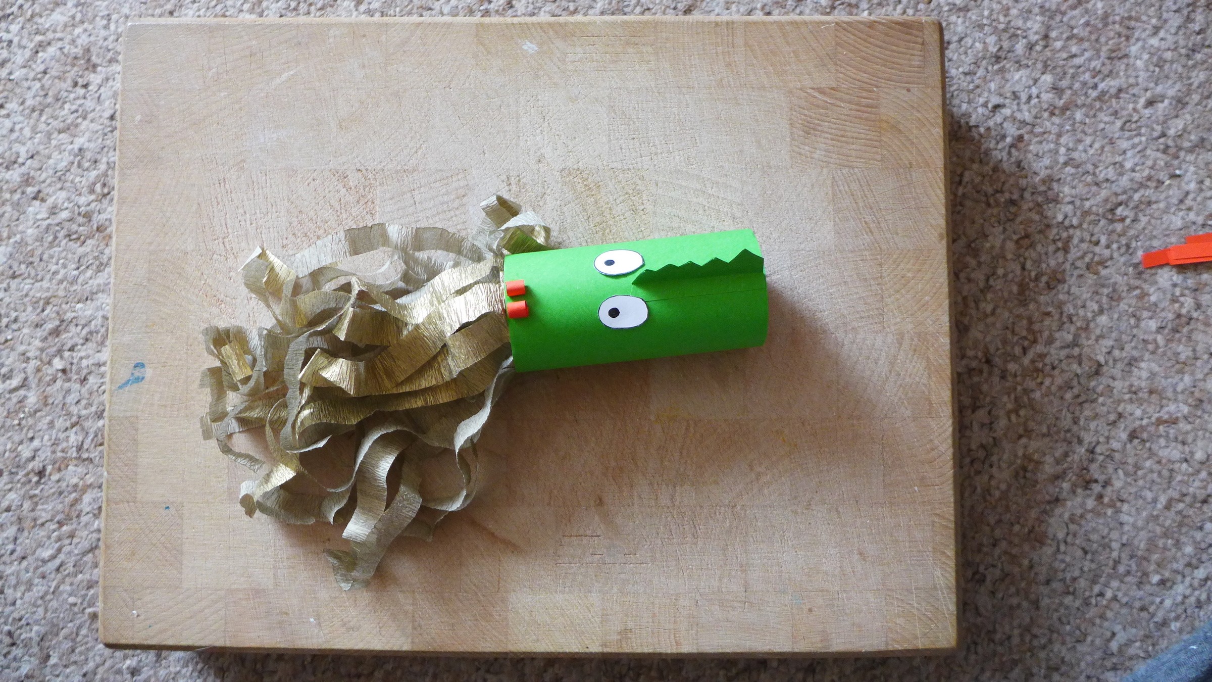 Z papiera si vystrihneme oči a nalepíme na telo. Prípadne môžete použiť aj gombíky :)