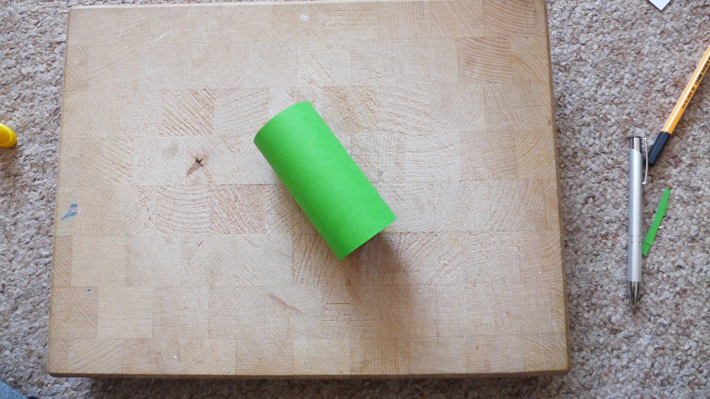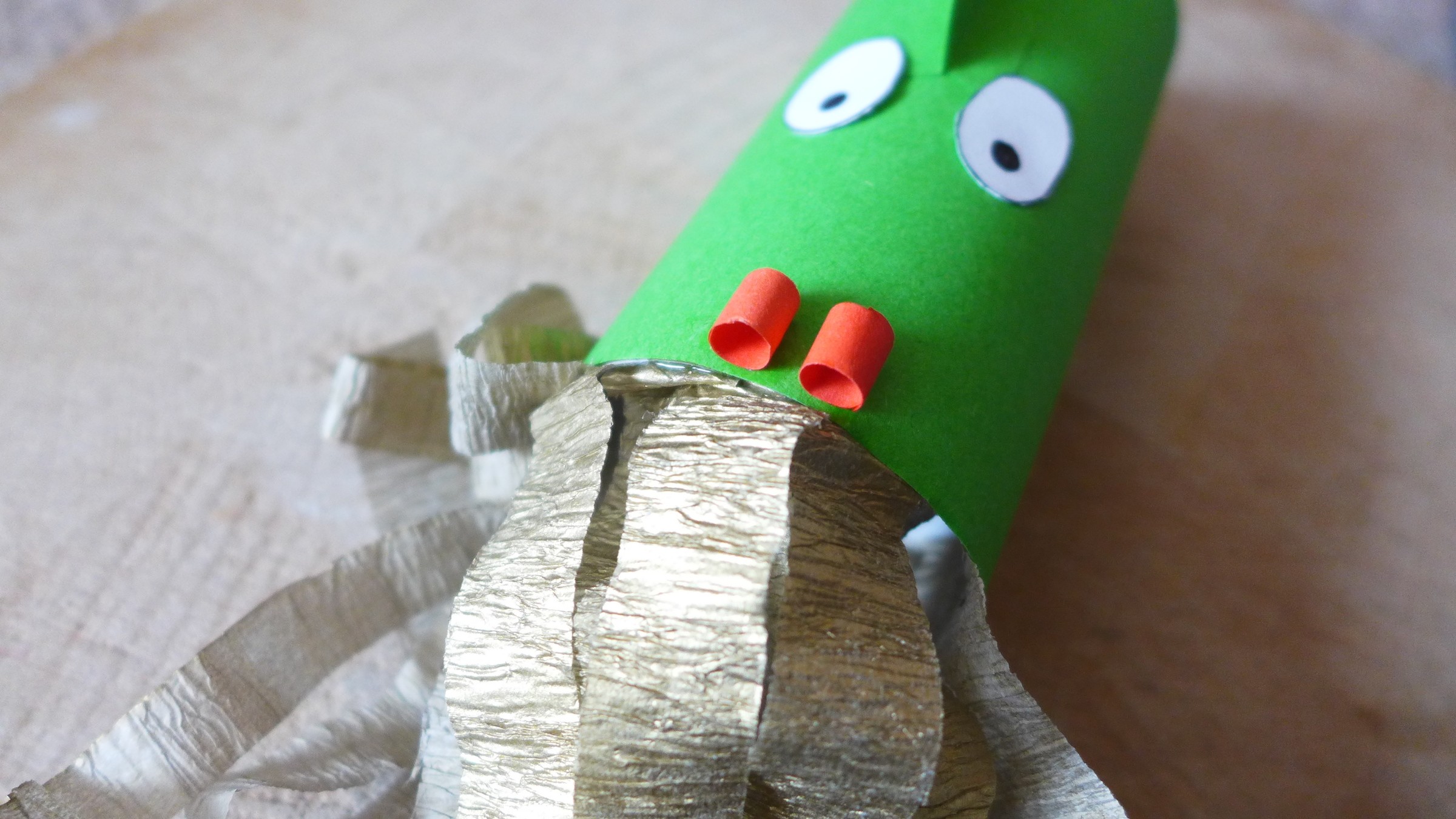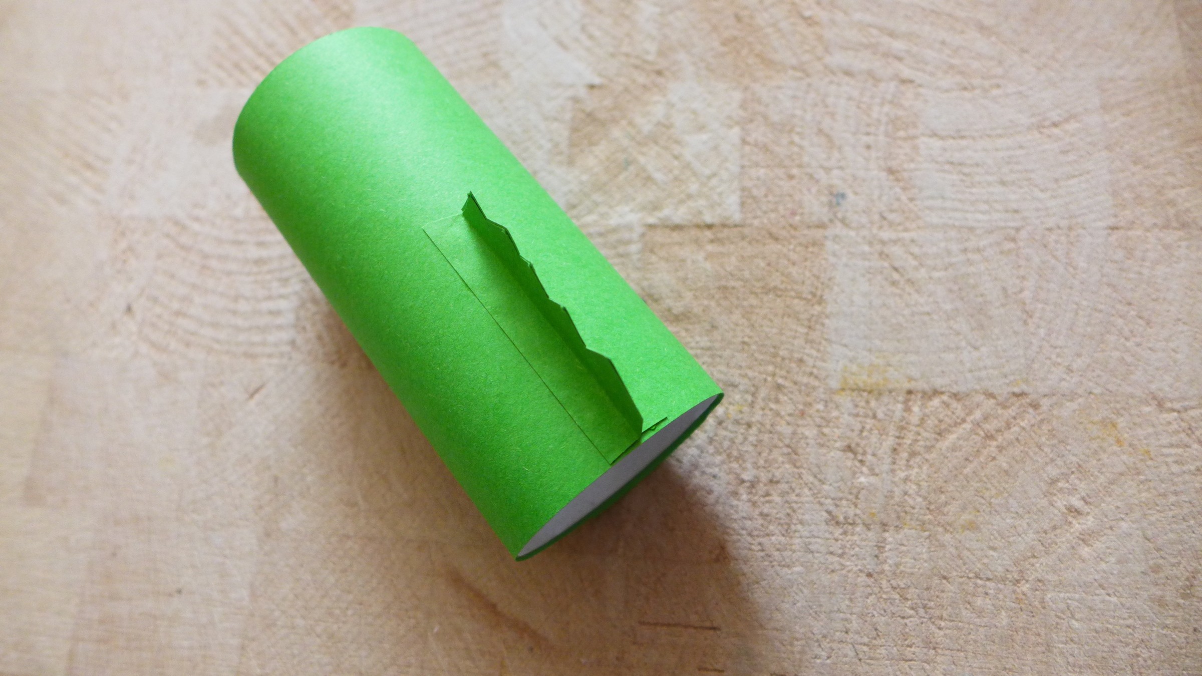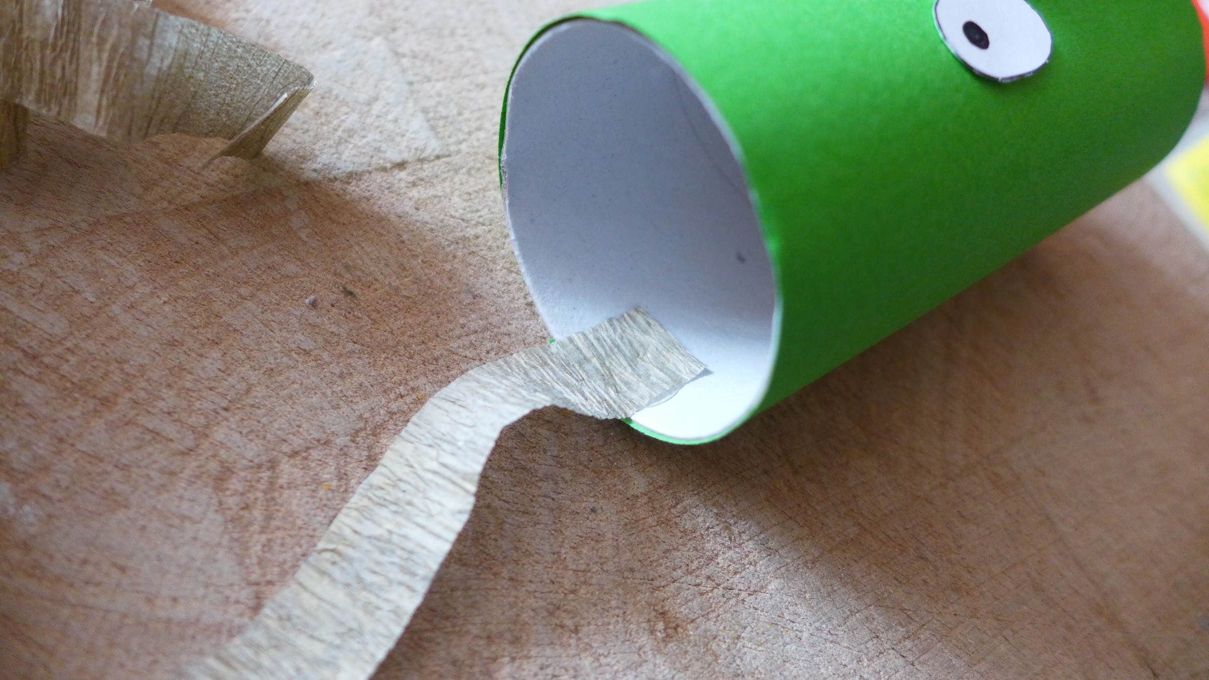 Rolku toaletného papiera si oblepíme farebným papierom. Prípadne si ho môžete rovno vyfarbiť.
