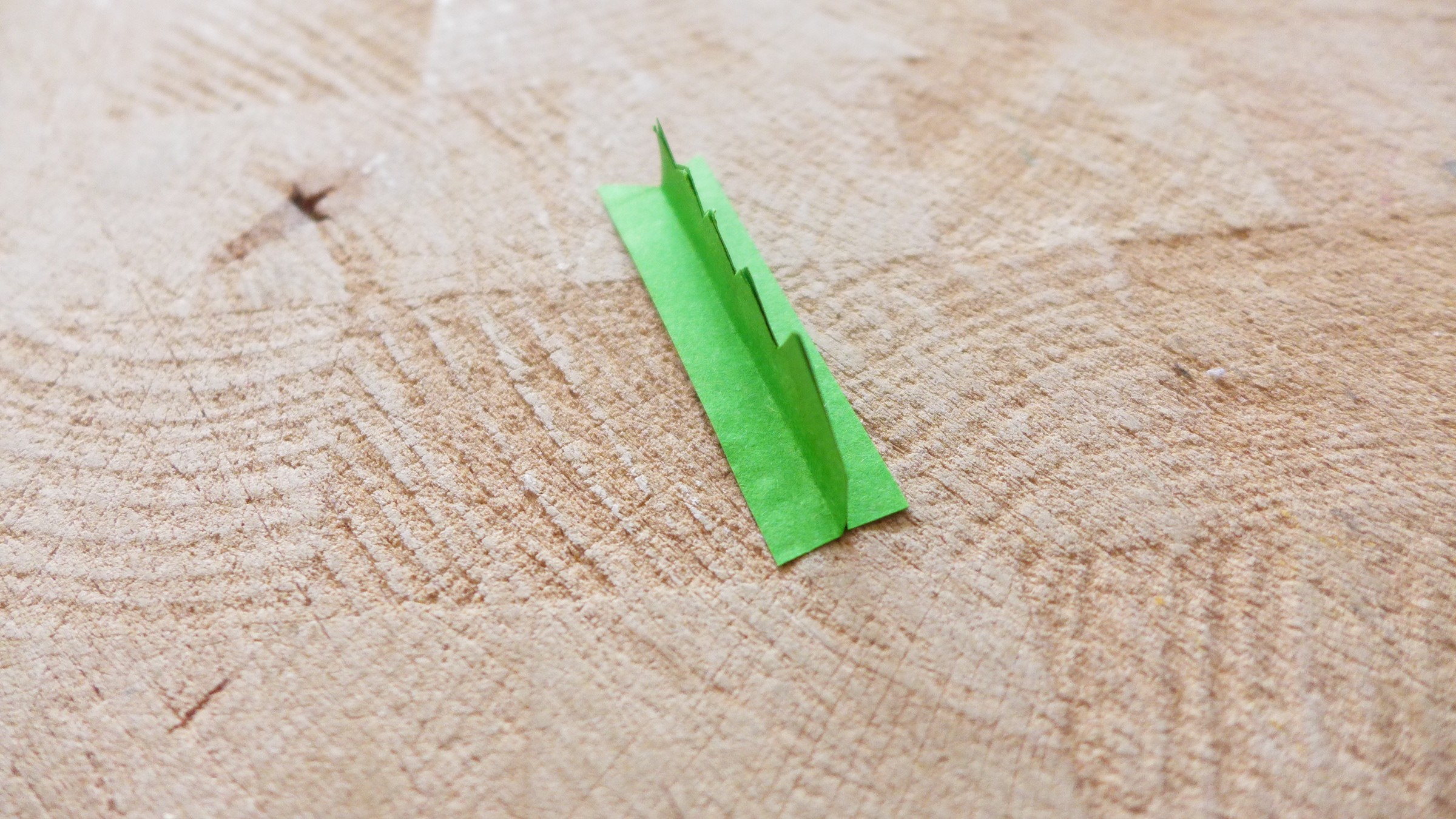 Vystrihneme a zahneme koniec papiera, ktorý bude použitý ako ostne na chrbát.