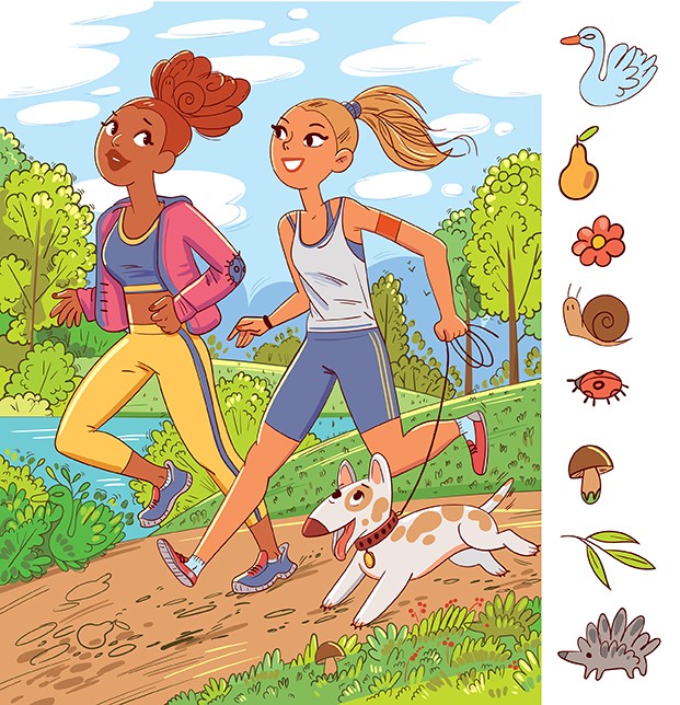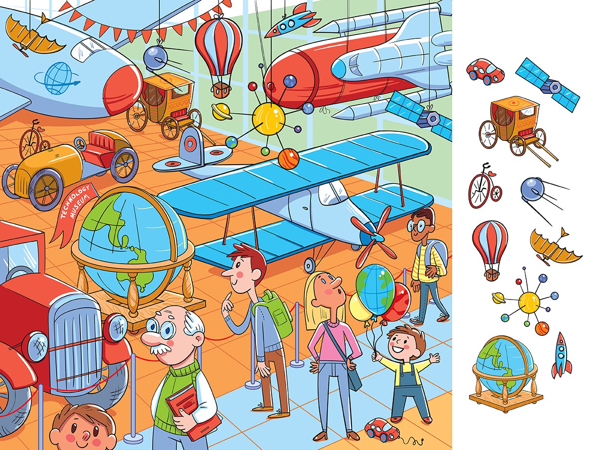 Nájdite predmety z pravej strany na obrázku vľavo.