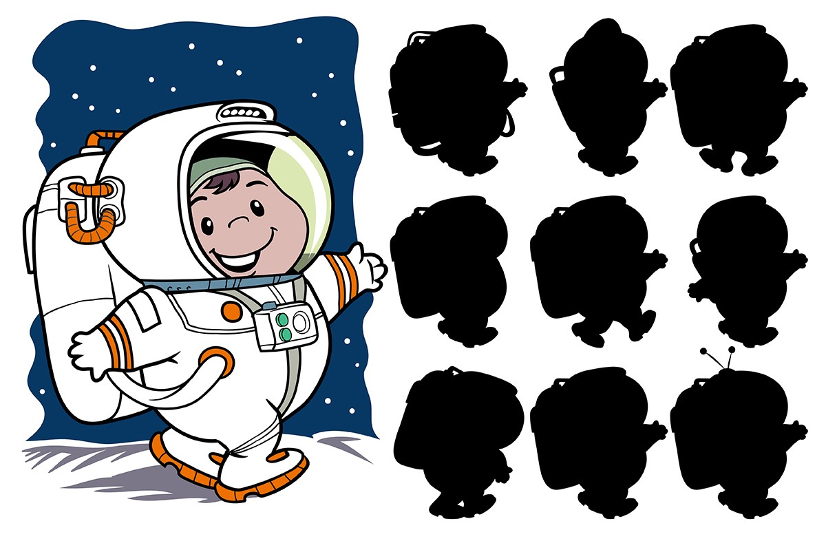 Ktorý tieň patrí kozmonautovi či zvieratku?