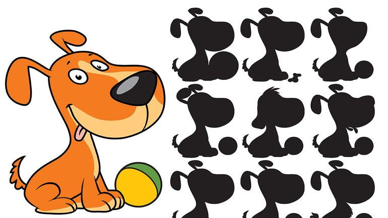 Nájdite správny tieň, ktorý patrí psíkovi.