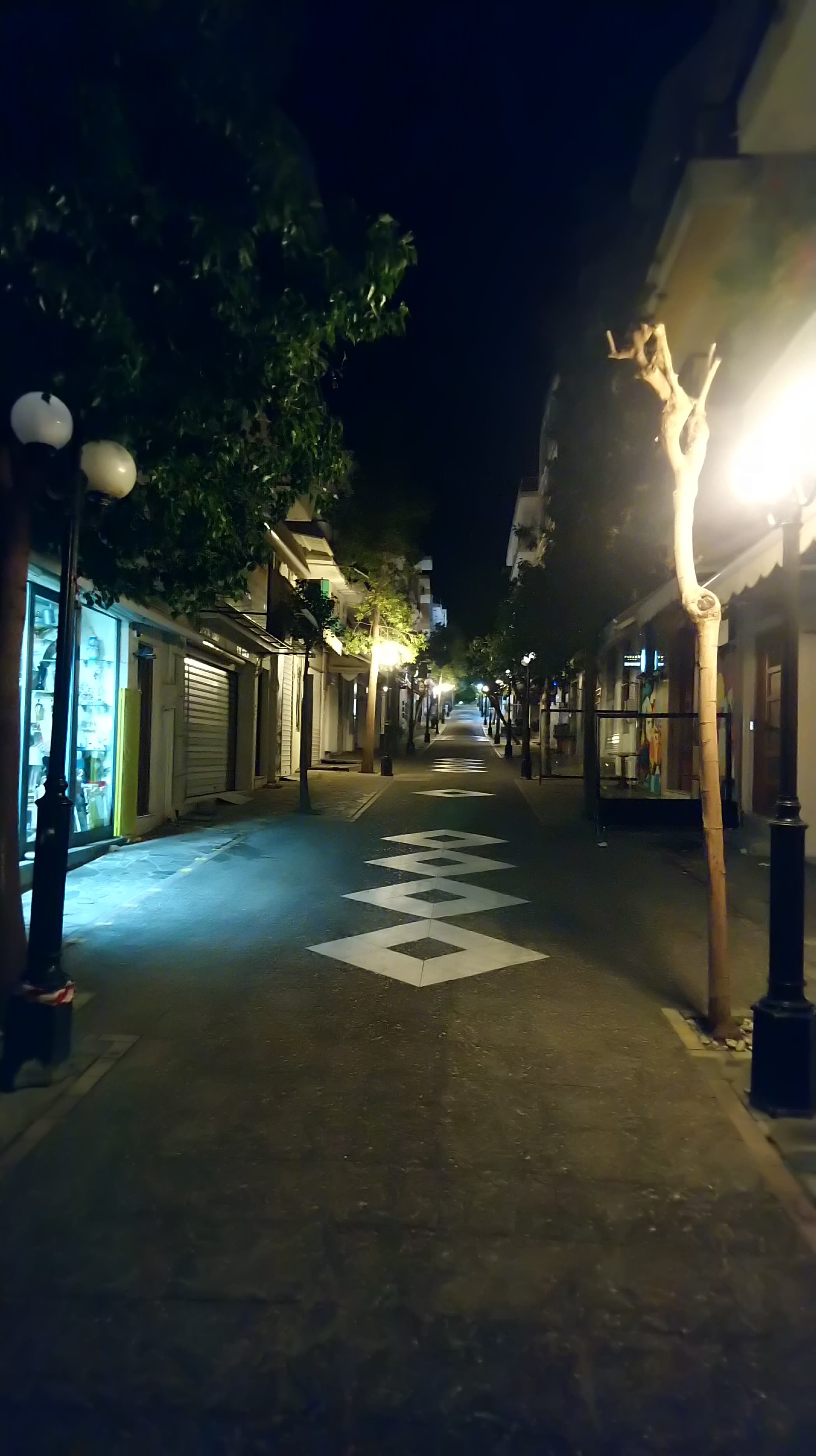 Prázdna hlavná pešia zóna v mestečku Agios Nikolaos