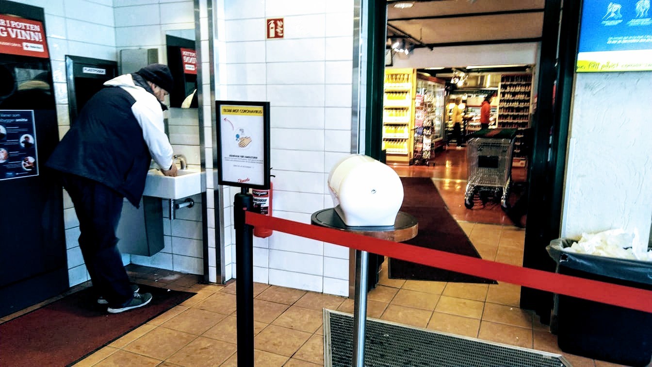 Pravdupovediac, ak každý deň stretnem jedného človeka, ktorý má rúško, tak je to veľa. Aspoň tu v Oslo sa rúška nenosia. Na druhej strane napríklad obchody zaviedli maximálny systém dezinfekcie. Funguje to tak, že pred vstupom do obchodu sú stojany s dezinfekčnou tekutinou na ruky a následne máme k dispozícii jednorazové gumené rukavice, ktoré po nákupe odhodíme do koša. Ďalšie obchody zaviedli povinné umývanie rúk dezinfekčným mydlom a vodou pred vstupom do obchodu. Ľudia stoja za sebou v dvojmetrových odstupoch, keď prídu na rad, umyjú si ruky a idú nakupovať.