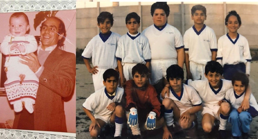 Malý Andrea v otcovej náruči a ako začínajúci futbalista (v spodnom rade druhý sprava)...