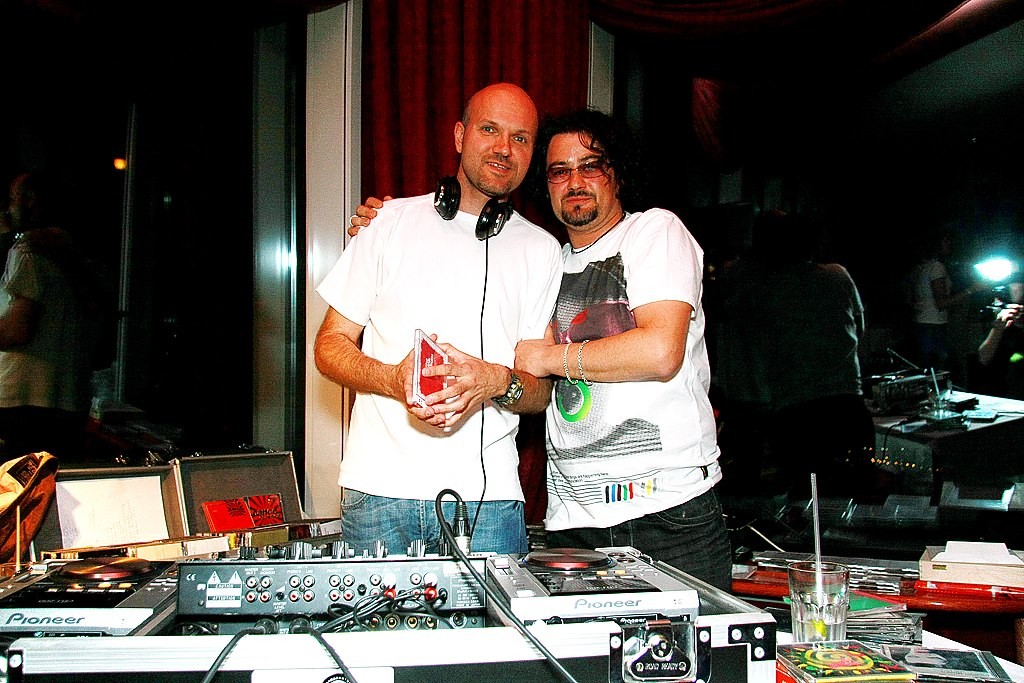 DJ Flebo s kamarátom Dušanom alias Gašpim počas akcie v roku 2008...