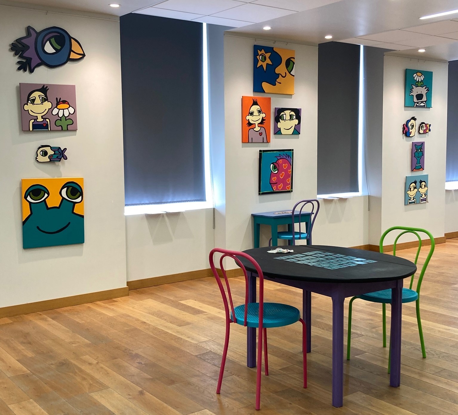 Áno, robila som na nej od zimy a otvorili ju v júli - v ďalšom juhofrancúzskom mestečku Bram, v tamojšom kultúrnom centre. Výstava mala názov To simply play a bola o manuálnej hre, takže na stenách boli obrazy a v priestore rôzne hry. K tomu inštalácie v parku a stena 16 m2 na strane budovy. Bola to moja prvá sólo výstava vo Francúzsku.