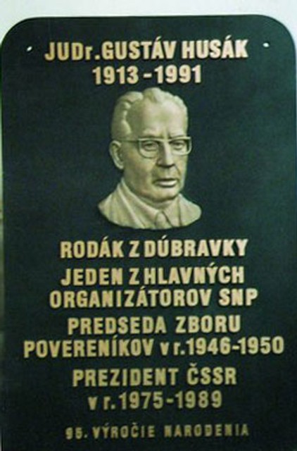 Pamätnú tabuľu Gustávovi Husákovi na budovu miestneho úradu v bratislavskej Dúbravke stále neosadili. Podľa hovorkyne Lucie Balajovej sa konkrétny dátum osadenia kritizovanej tabule rodákovi z tejto mestskej časti ešte určiť nepodarilo.