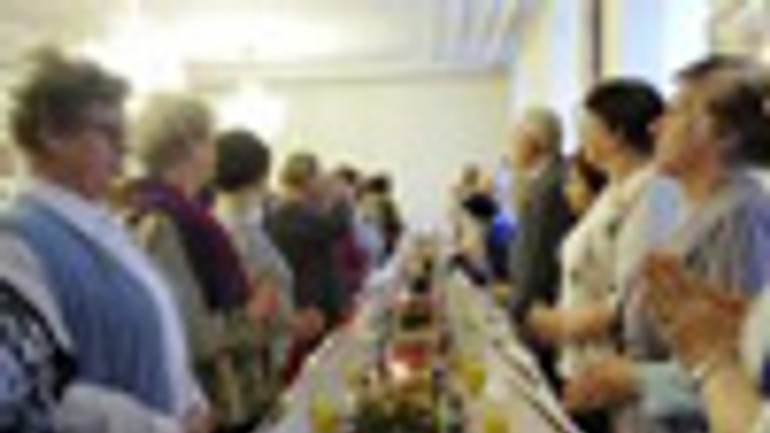 Po príhovoroch evanjelického a katolíckeho kňaza sa spoločne pomodlili Otčenáš a zaspievali Tichú noc. Potom už nasledovalo slávnostné menu. Bolo tradične vianočné - od oblátok s medom cez kapustnicu, rybu so zemiakovým šalátom až po vianočný dezert.