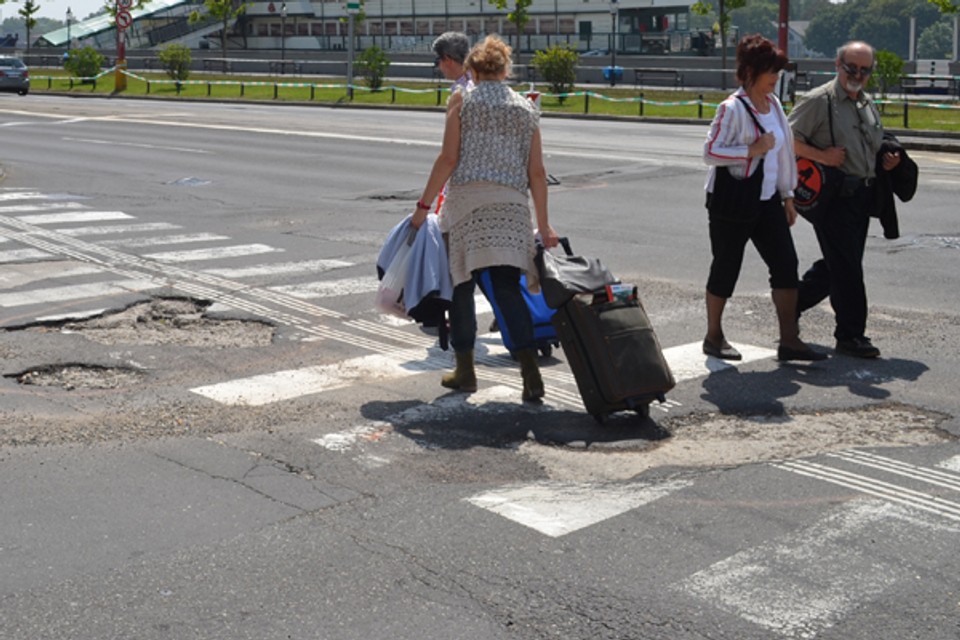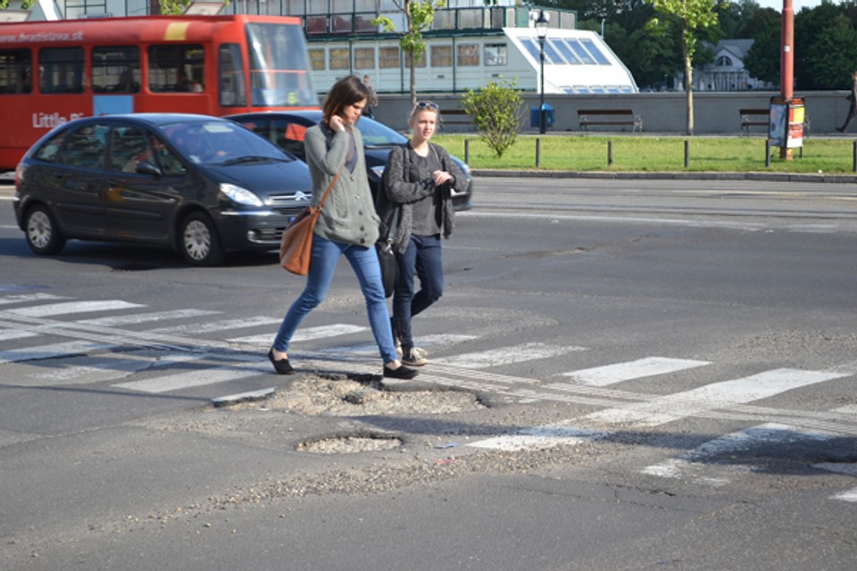 Kým sa magistrát s mestskou časťou sporia, výtlky sa prehlbujú a stále viac komplikujú prejazd autám aj prechod chodcom. Len na priechode je päť veľkých výtlkov. Kolmo od priechodu sú v strede komunikácie na Rázusovom nábreží ďalšie dva veľké výtlky, na ktoré upozorňuje dočasné dopravné značenie. V okolí je ešte niekoľko malých výtlkov.