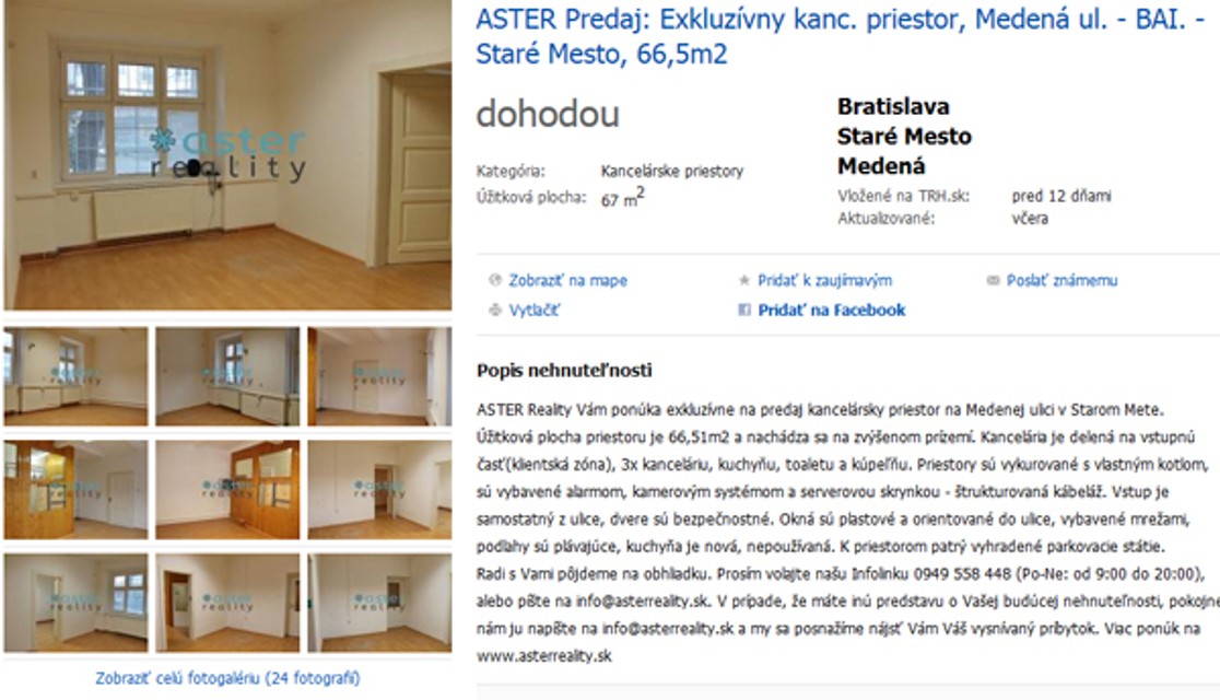 Staromestské kancelárie kúpili za 70-tisíc, predávajú ich za 130-tisíc - medena1