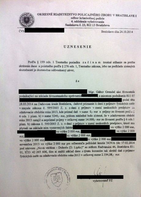 Polícia začala trestné stíhanie 24. októbra. „Vo Vami spomínanej veci začal vyšetrovateľ Okresného riaditeľstva PZ v Bratislave I trestné stíhanie vo veci prečinu skrátenia dane. V tejto súvislosti sa v súčasnosti vykonávajú všetky potrebné úkony dôležité na to, aby vyšetrovateľ mohol rozhodnúť o ďalšom postupe. Vzhľadom na súčasné štádium trestného konania, viac informácií momentálne nie je možné poskytnúť,“ potvrdila nám bratislavská policajná hovorkyňa Tatiana Kurucová.