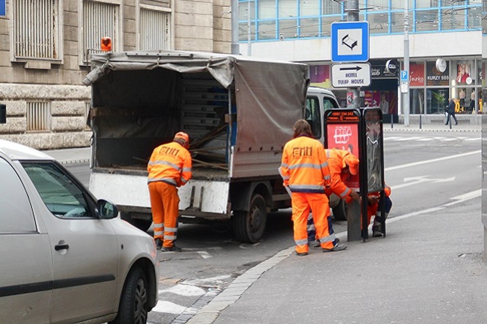 Hlavné mesto (článok nájdete TU) začalo s odtraňovaním nelegálnych trojnožiek spoločnosti Present. Po pár hodinách sa však zdalo, že prichádza k neočakávanému zvratu. Na pracovníkov firmy, ktorá z poverenia magistrátu trojnožky odstraňuje, totiž zavolali zástupcovia firmy Present štátnu políciu. Muži pracujúci na demontáži trojnožiek museli svoju prácu zastaviť a rozmontované trojnožky, ktoré už stihli naložiť do auta, vyložiť.