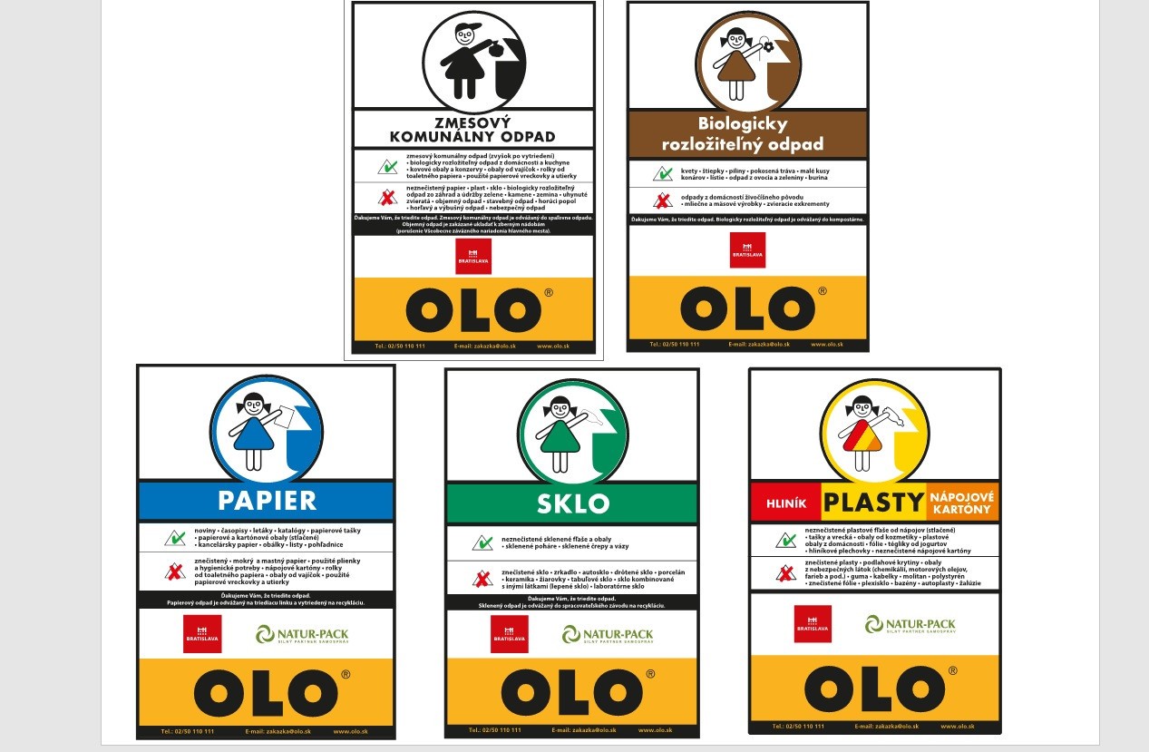 Na nových polopodzemných kontajneroch sa prvý raz nachádzajú už aj nové nálepky, ktoré časom pribudnú na všetky zberné nádoby v hlavnom meste. Ide o nádoby na zmesový komunálny a triedený odpad – papier, plasty, sklo a biologicky rozložiteľný odpad zo záhrad. Nové nálepky obsahujú logo hlavného mesta, informáciu o tom, akým spôsobom sa ďalej nakladá s jednotlivým druhom odpadu a tiež aktuálne informácie o tom, aký odpad patrí, resp. nepatrí do konkrétnej zbernej nádoby. Cieľom nových nálepiek je poskytnúť obyvateľom aktuálne a podrobné informácie o tom, ako správne triediť odpad a čo sa s konkrétnym druhom odpadu deje ďalej.