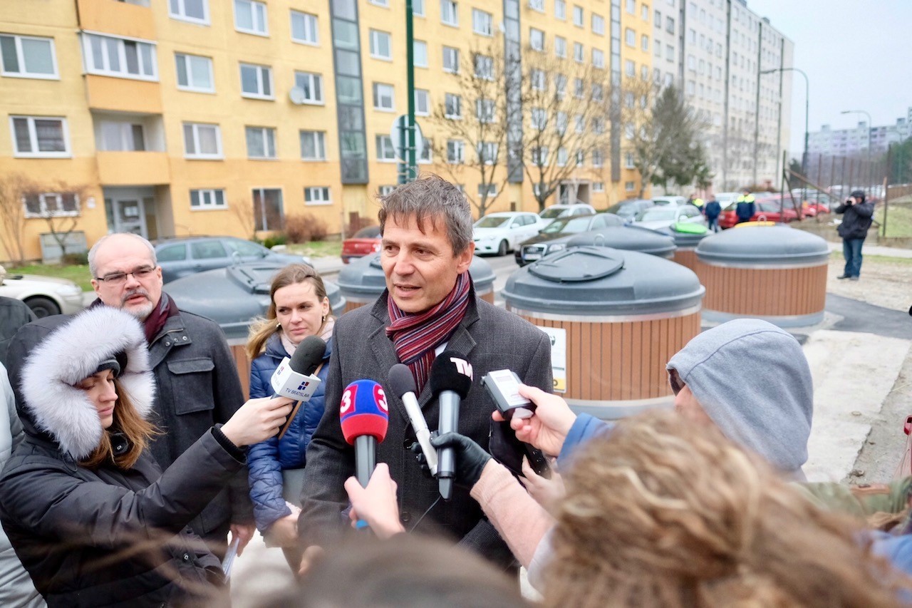 Na Budatínskej v Petržalke dnes otvorili stanovište polopodzemných kontajnerov. Primátor Ivo Nesrovnal zároveň predstavil aj nové nálepky určené na zberné nádoby v hlavnom meste.