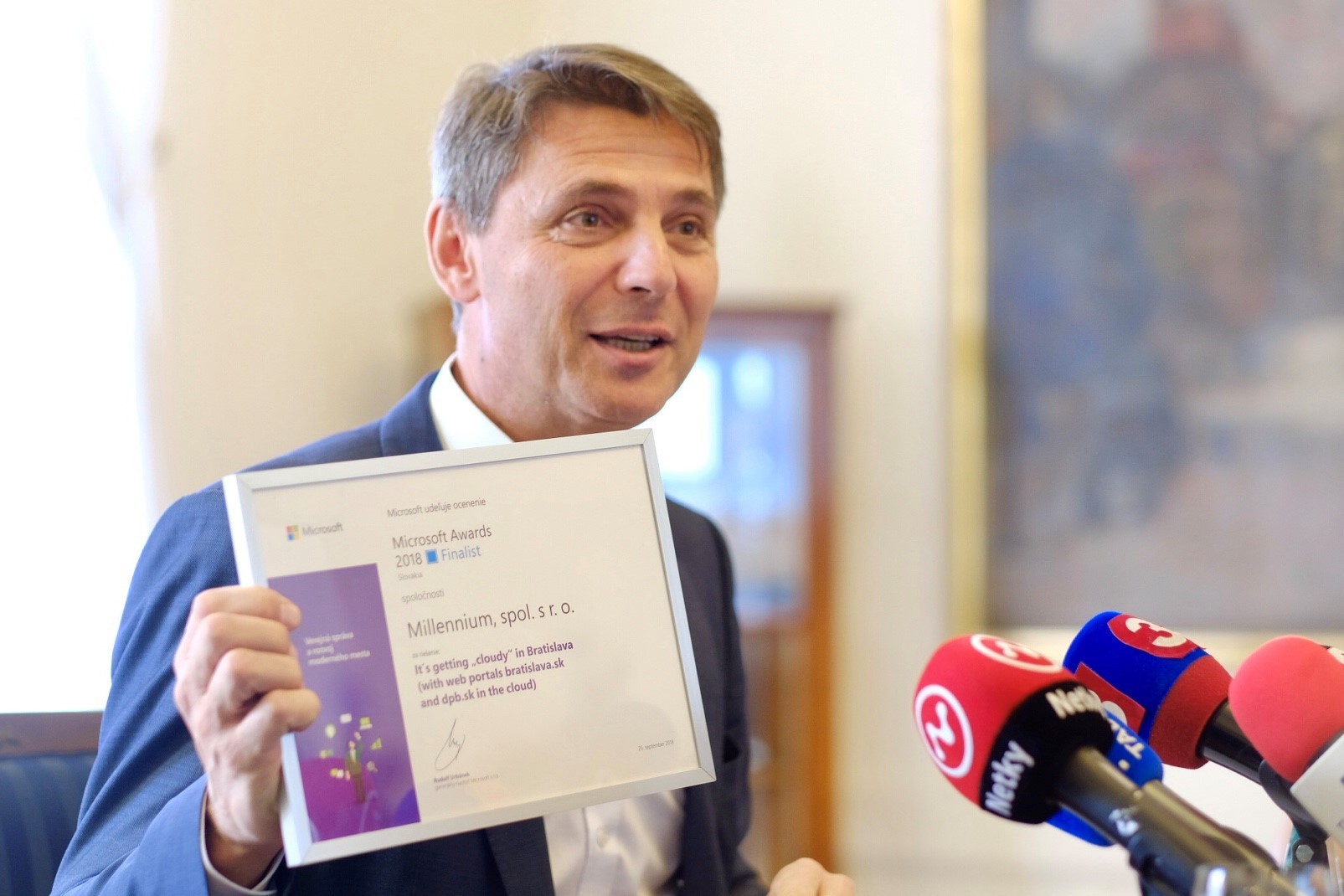 Celkovo šestnásť webových riešení od partnerov z Českej republiky a Slovenska v 10 kategóriách získalo ocenenie v jubilejnom dvadsiatom ročníku Microsoft Awards 2018. Medzi nimi sa v kategórii Verejná správa a rozvoj moderného mesta umiestnili aj webové platformy mesta Bratislava a Dopravného podniku Bratislava, ktoré pre mesto dodala firma Millennium.