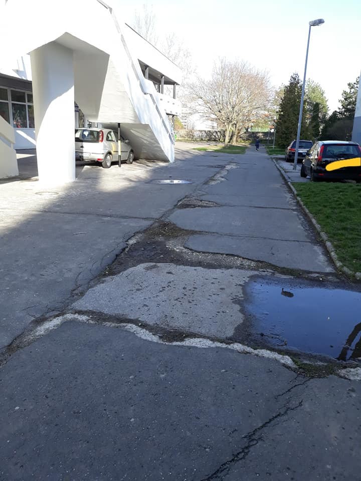 "Plánujú sa v r. 2019 opravy ciest a chodníkov na Pošni? Zábery sú z ulíc Podlučinského a Albrechtova, ktoré motoristi často využívajú ako skratku cez sídlisko z Gagarinovej na Tomášikovu alebo Ružinovskú. Obchádzajú tým svetelné križovatky. Pritom sídliskové ulice neboli stavané na takúto frekvenciu dopravy.