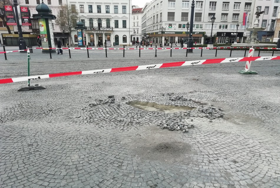 Hovorca magistrátu Peter Bubla nám však prisľúbil, že oprava dlažby na Námestí Eugena Suchoňa patrí medzi práce, ktoré sa budú realizovať túto sezónu medzi prvými. A naozaj, včera už na mieste pracovali robotníci. Rekonštrukciu dlažby síce ešte nedokončili, ale bude to zrejme otázka pár dní či dokonca hodín.