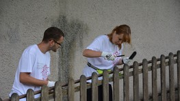 Dobrovoľníci zapojení do podujatia Naše Mesto sa od rána pustili do upratovania jej vonkajších priestorov, čistia od navezeného odpadu, invazívnej vegetácie, ktorá utláča pôvodné rastlinné druhy a pomohli vyčistiť aj historické stavebné prvky (domček, skleníky, historický mobiliár).