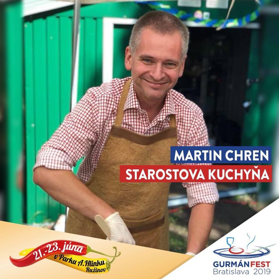 Gurmán Fest v sobotu otvárajú o dvanástej napoludnie, program potrvá do desiatej večer. Na pódiu mestskej časti môžete ochutnať i to, ako varí starosta Martin Chren. "Keď prídete medzi 12-tou a piatou, môžete ochutnať skvelé vegánske noky, dva druhy zákuskov a kukuricu sous-vide. Zisk z predaja venujeme na dobročinné účely v Ružinove, takže sa nielen namlsáte, ale spáchate aj dobrý skutok," informoval na sociálnej sieti Chren.