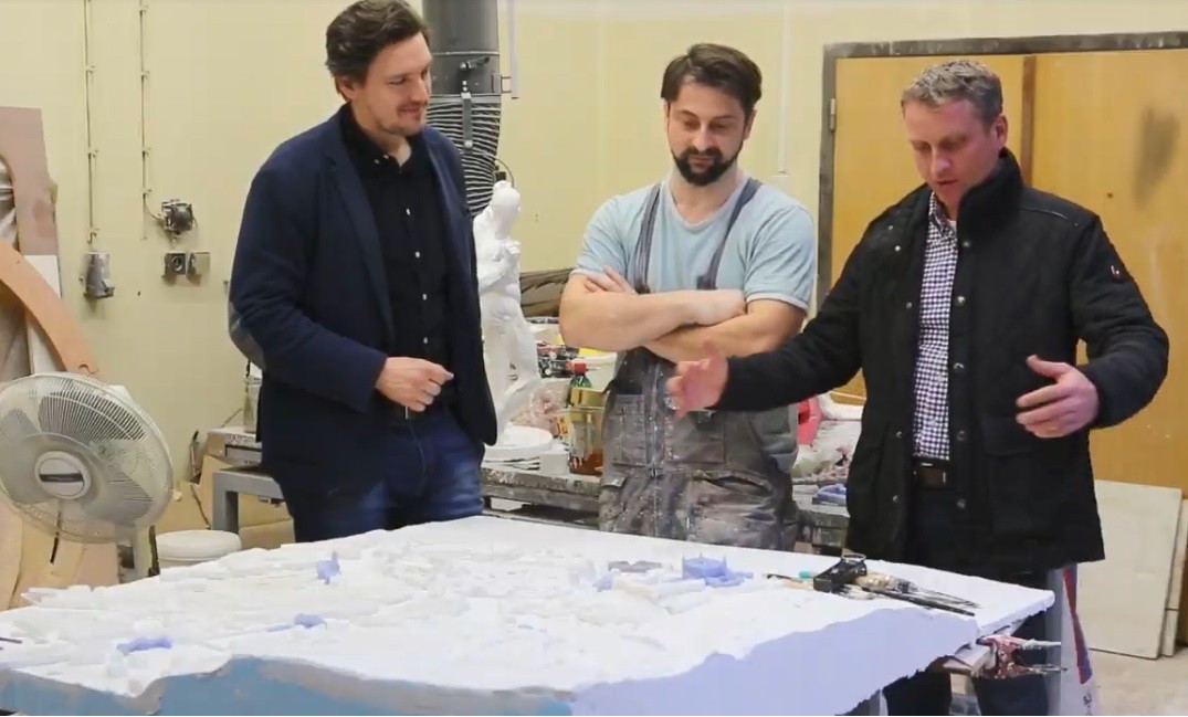 Maroš Mačuha ( vľavo) pri tvorbe modelu: