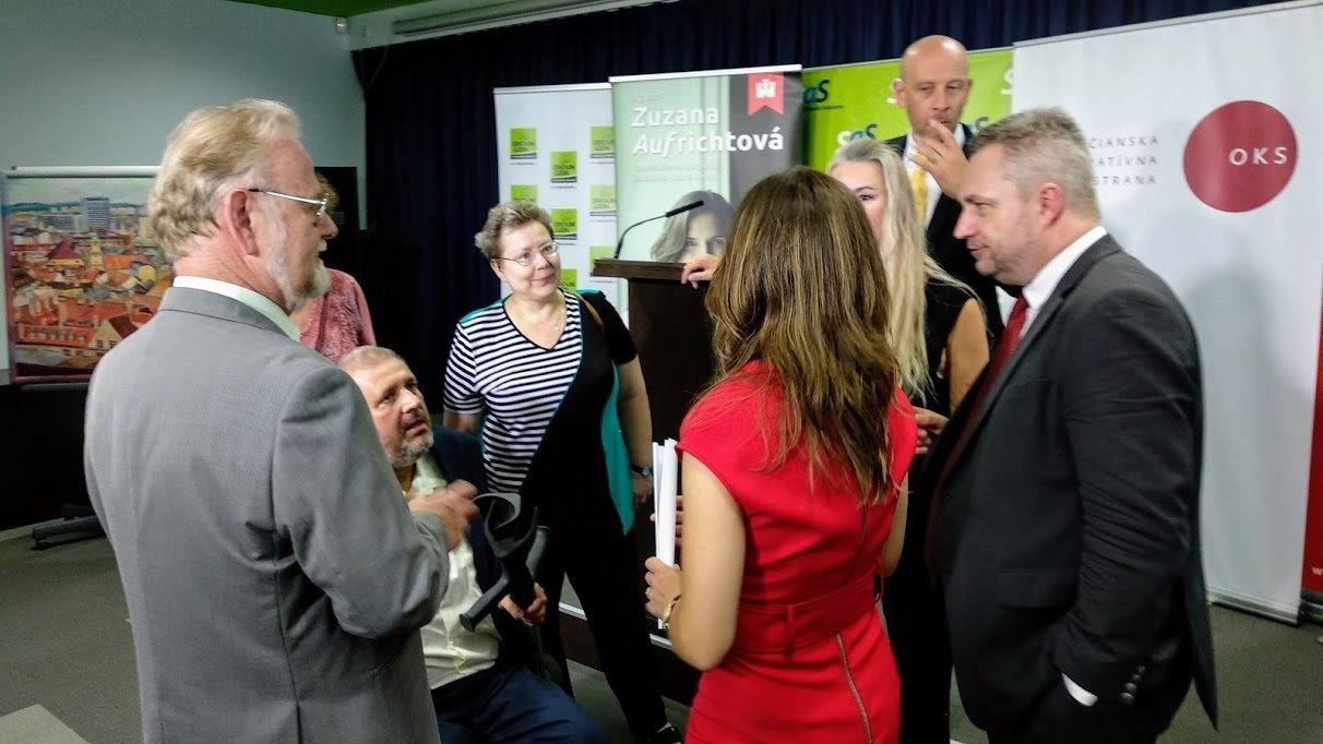 Aufrichtová ohlásila kandidatúru pred rokom, vľavo vidno v pozadí spomínaný obraz: