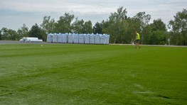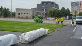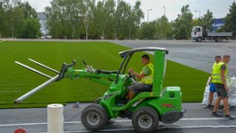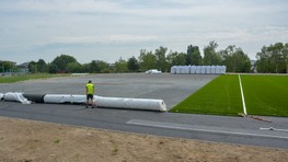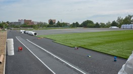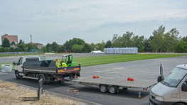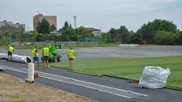 Obnova areálu, ktorá sa začala v máji, by mala byť hotová koncom letných prázdnin. Ako sme sa dnes na mieste presvedčili, na budúcom futbalovom ihrisku už popkladajú umelý trávnik.