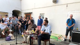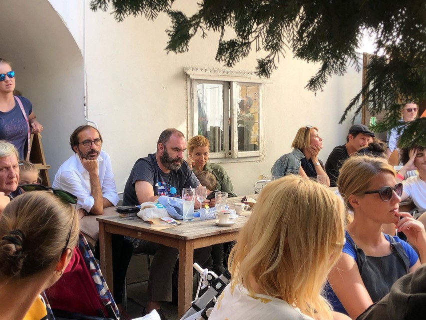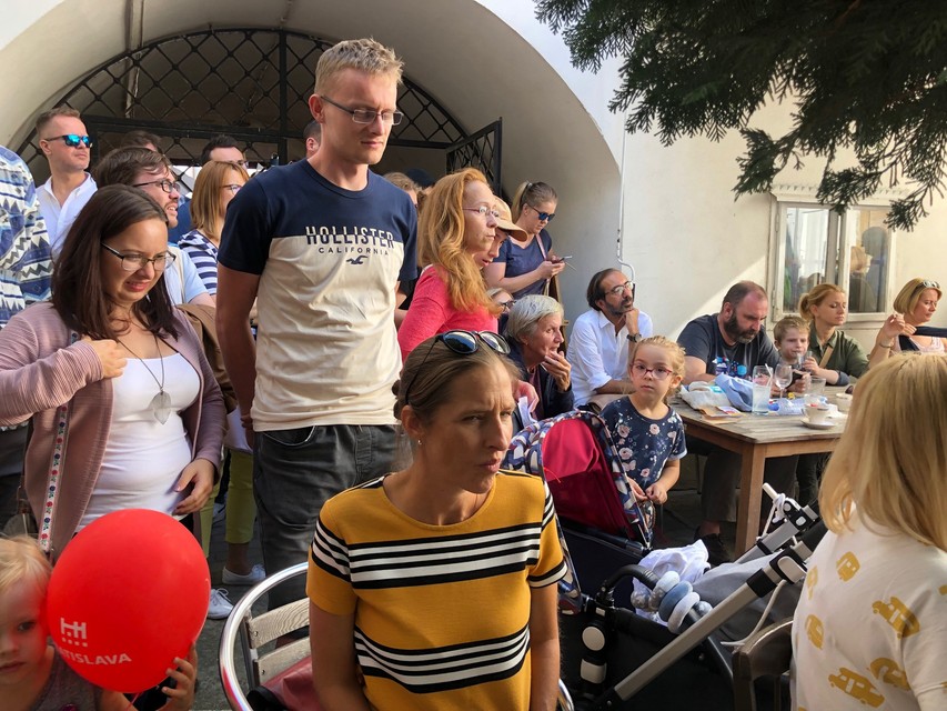 Miesta nazvyš nebolo, tí, ktorí nemali miesto na sedenie, zostali stáť pri vchode na nádvorie. V hľadisku sme zahliadli aj primátorovu manželku Lindu, mamu či jeho poradcu Vlada Taliana.