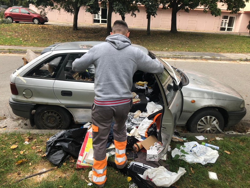 Starý autovrak osobného auta Opel plný smetí už nebude viac obťažovať obyvateľov Bilíkovej ulice v bratislavskej Dúbravke. Dnes ho totiž odviezli preč. Je však neuveriteľné, koľko smetí sa v ňom nahromadilo. Veď posúďte sami.