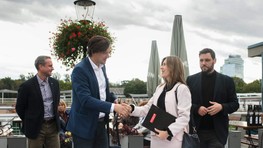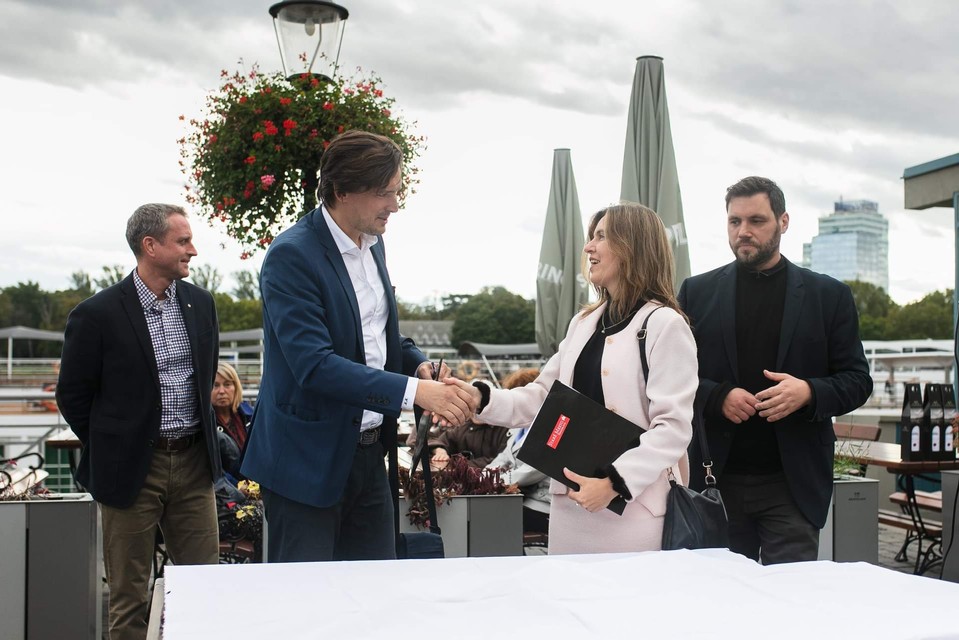 Model po salve z historického dela odhalili starostka Starého Mesta Zuzana Aufrichtová spolu s riaditeľkou Bratislava Tourist Board Alžbetou Melicharovou: