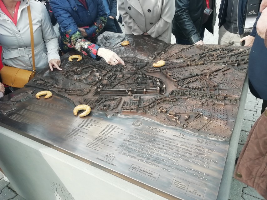 Model pokrstili bratislavskými rožkami, nájdete na ňom popisky v štyroch jazykoch (slovenčine, maďarčine, nemčine a angličtine) plus popis pre nevidiacich. "Vďaka popisu v Braillovom písme poslúži aj nevidiacim, aby si mohli takto mesto ohmatať a získať predstavu, ako v 18. storočí vyzeralo," vysvetlil Martin Sloboda, iniciátor projektu z Rotary Clubu Bratislava Danube.