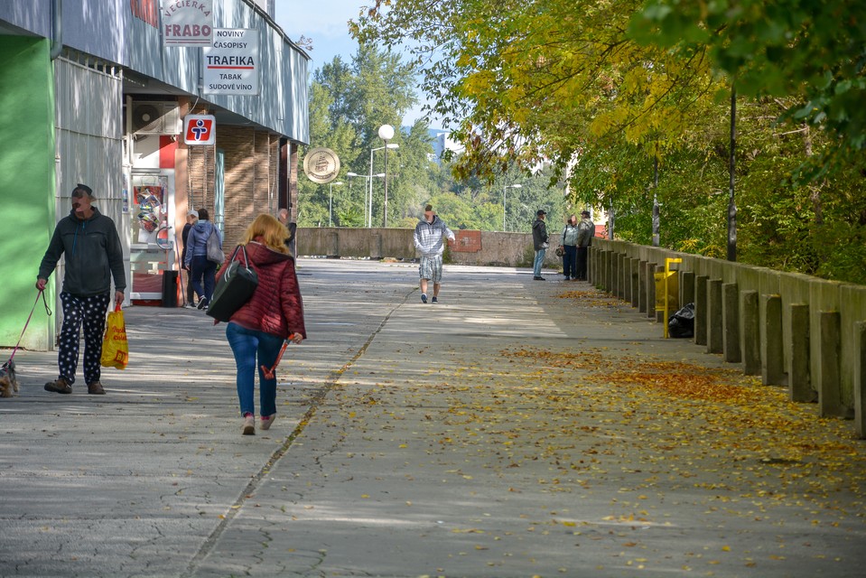 Napokon na konci terasy, keď prejdeme okolo Domu kultúry Lúky a kedysi legendárneho Braníka na Vígľašskú, je predajňa potravín otvorená tiež od 7.00 h do 21.00 h. Tu umelohmotné poldecáky nepredávajú, tu sa nakupujú skôr pollitrové fľaše tvrdého alkoholu. Kupujúcich neselektujú, pred potravinami však nikto nestojí. Predavačka nám tvrdí, že to zarazili hneď na počiatku. „Všetci sa presunú na terasu Beňadickú alebo na trhovisko,“ tvrdí.