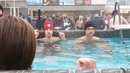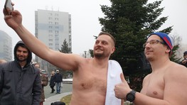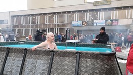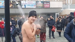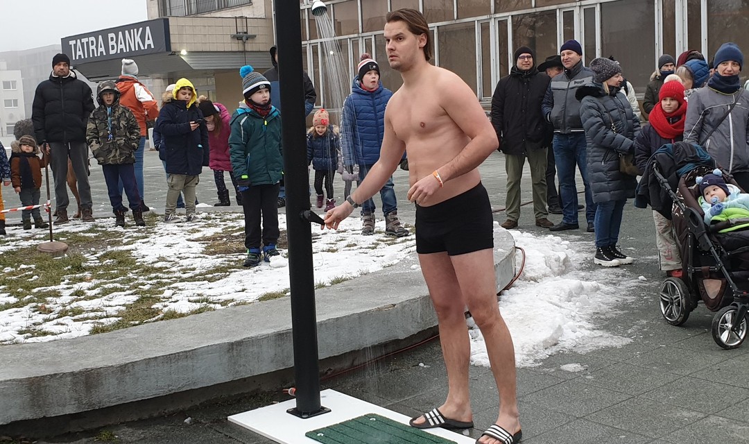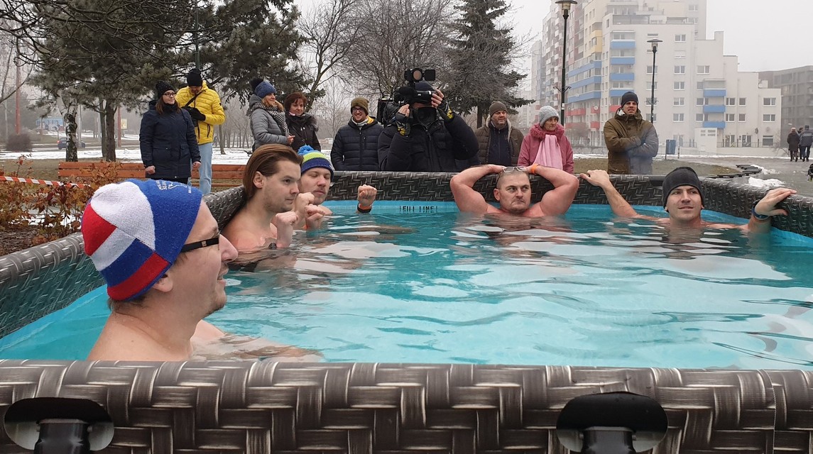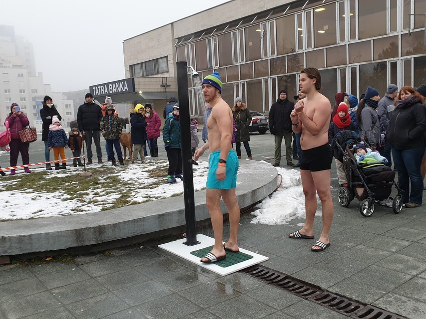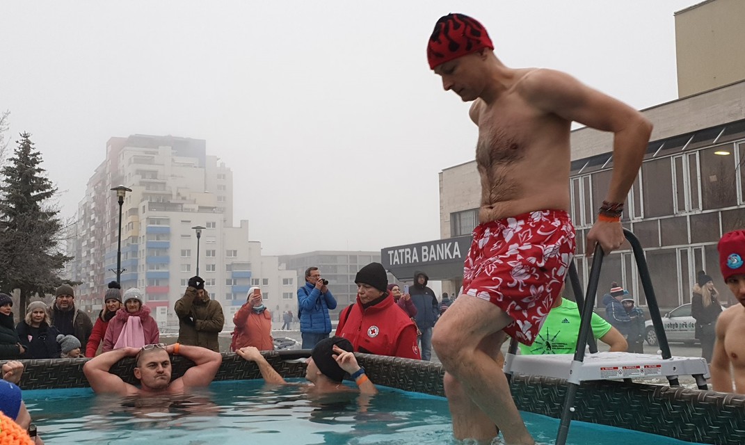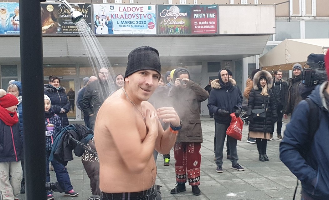 Pred Domom kultúry Dúbravka v nedeľu postavili bazén s ľadovou vodou, do ktorého pred zrakmi divákov vliezli otužilci v plavkách. V rámci podujatia Dúbravský ľadový medveď si zasúťažili, kto vydrží v ľadovej vode najdlhšie.