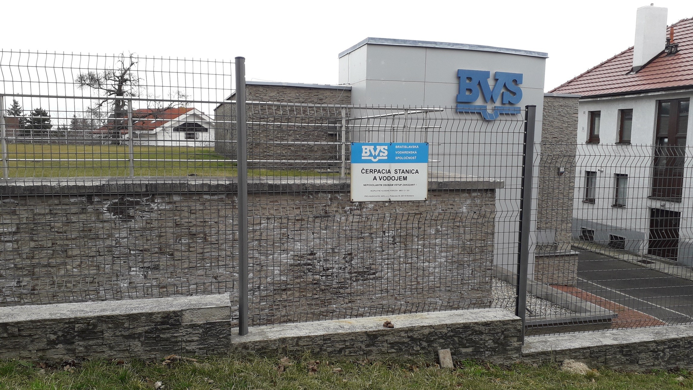 Vodojem BVS v blízkosti ulice.