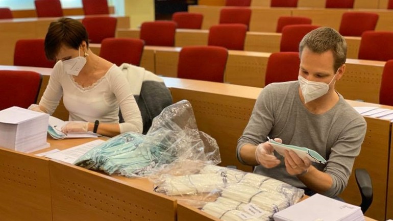 Bratislavský Ružinov distribuuje v týchto dňoch rúška pre najohrozenejších seniorov žijúcich v tejto mestskej časti. Dobrovoľníci balia rúška na miestnom úrade pre takmer tisíc seniorov, do schránok by mali byť rozdistribuované v utorok a v stredu (25. 3.).