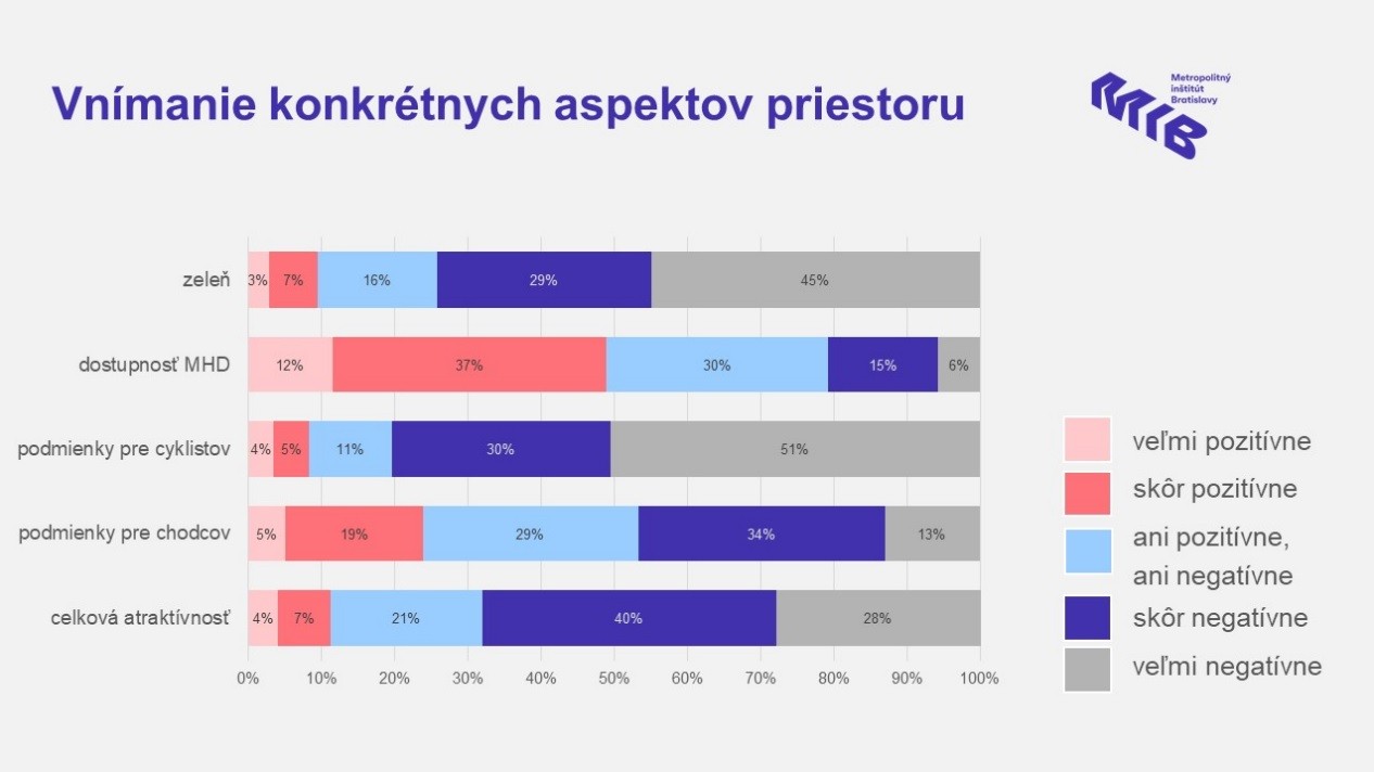 Dostupnosť MHD je zároveň na Krížnej jedným z mála hodnotených kritérií, s ktorým je väčšina respondentov spokojných. Priamo na ulici sú totiž zastávky električky.