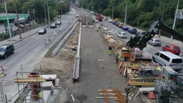 Na rekonštruovanú trať v Karovej Vsi sa objavili sťažnosti. Problémom bol dunivý zvuk, ktorý vznikal pri prejazde električiek. Po novom, teda na úseku medzu tunelom a Molecovou, ktorý rekonštruujú v týchto dňoch, by to už malo byť lepšie. Antivibračnú rohož (na foto modrej farby) už totiž umiestňujú inak ako predtým.