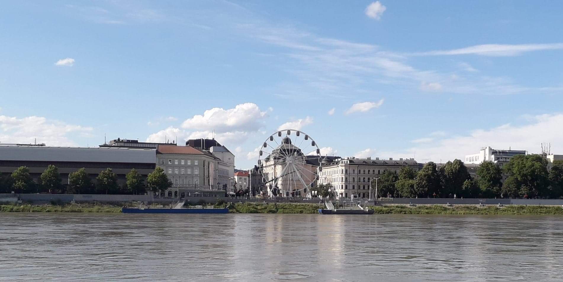 Pohľad z Petržalky. Zakrýva koleso budovy v meste či nie?