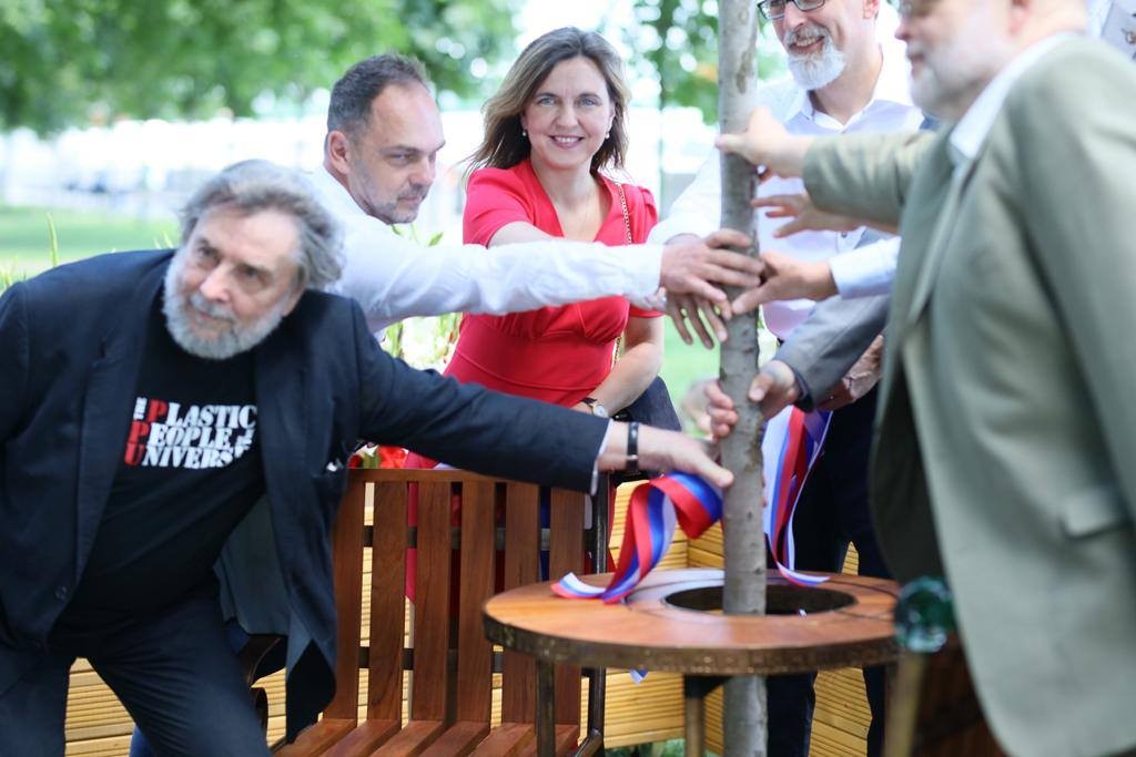 Odhalenia lavičky sa zúčastnila starostka Starého Mesta Zuzana Aufrichtová, expredseda parlamentu František Mikloško, exminister kultúry Ladislav Snopko a viacerí súčasní i bývalí politici či zástupca českej ambasády Pavel Sladký.