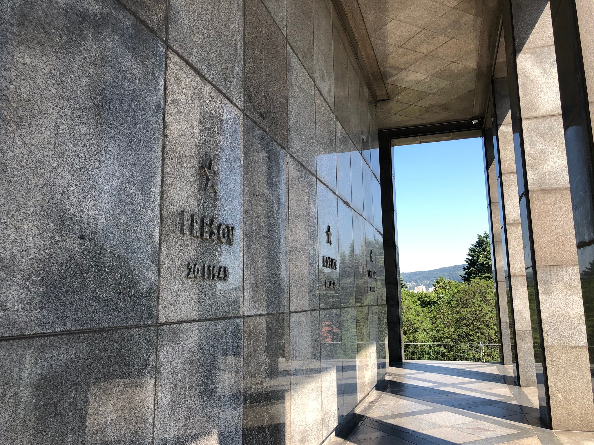 Nápisy pripomínajú dátumy oslobodenia jednotlivých slovenských miest počas druhej svetovej vojny...